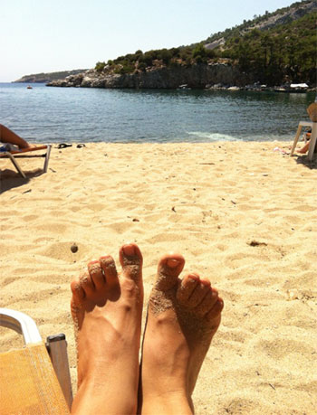 Moj muž je toliko patio od gljivica... Sad leži na plaži, bez oklijevanja, šalje mi fotografije))